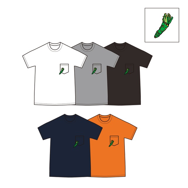 生わさびの刺繍を施したポケットTシャツ。右肩後ろには「RINGO FES.」のプリントも。 【素材】 綿100% ※グレー : 綿90% /ポリエステル10% ※オレンジ : 綿50% /ポリエステル50% 【サイズ】 身丈 / 身幅 / 裄丈(cm) S : 71 / 46 / 41 M : 74 / 51 / 45 L : 76 / 56 / 49 XL : 79 / 61 / 53 【ボディ】 6ozウルトラコットン ポケットTシャツ(GILDAN2300)