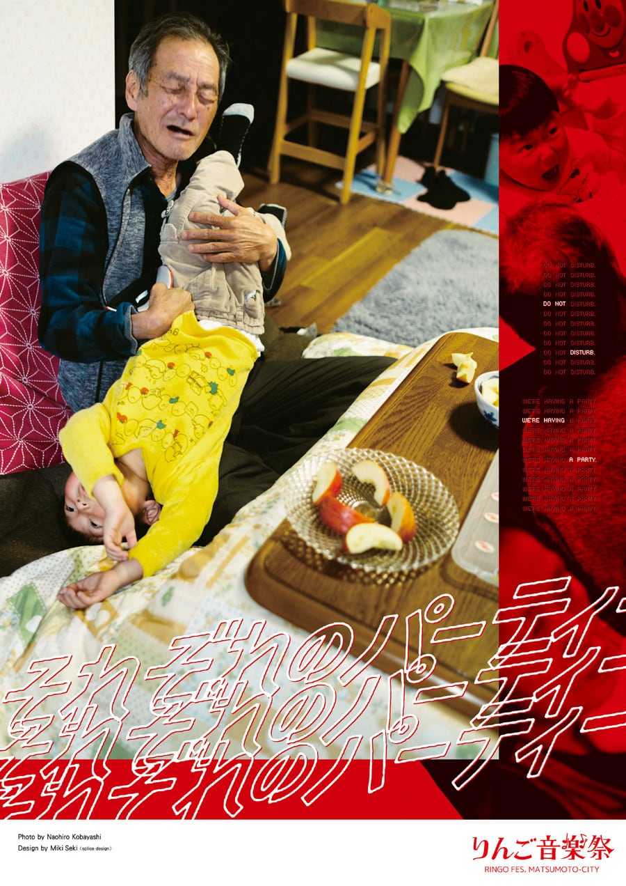 地方にいるイケてるじいちゃん・ばあちゃんをスタイリッシュに発信!フリーペーパー「鶴と亀」の小林直博による撮り下ろしの写真と、Miki Sekiデザインによる、「それぞれのパーティー」をテーマにした、りんご音楽祭アートポスター第9弾!